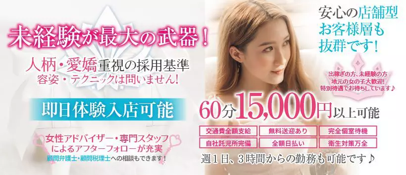 全国20店舗以上を展開する大手ハピネスグループの店舗。松山にありながら「東京と同じバック率・待遇」で働けるのが最大の魅力です。最低日給保証があるため、未経験者やブランクのある方も安心。待機は完全個室で、毎月更新される最新コスプレや撮影スタジオも完備しています。寮は家具家電付きでコンビニまで徒歩圏内と、出稼ぎ環境も抜群。提携美容クリニックの優遇など、自分磨きも叶う「女の子優先主義」のお店です!