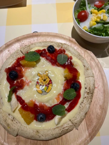 サラダとフルーツピザをもちゃもちゃ食べてきました。