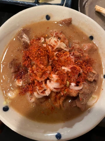 もつ煮込み、浅漬け、鶏皮、レバー、注文した食べ物が結構美味しかったです。