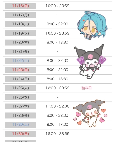 日記でも上げましたが、11月後半のシフトも提出しているよ!