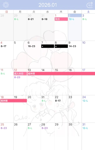 1月のシフト