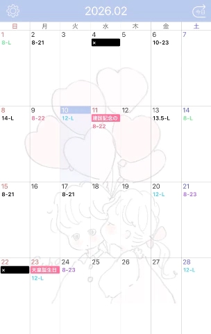 2月のシフト