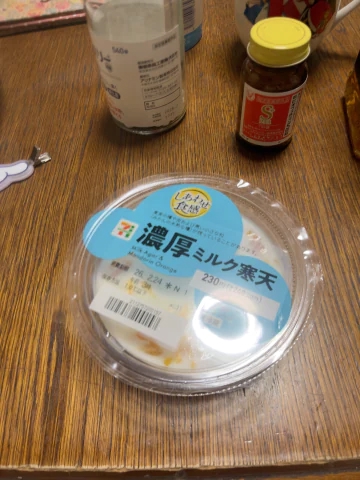これは長年セブンで販売しているのにも関わらず寒天だからという理由であんまり手を出さなかったミルク寒天みかん入り。