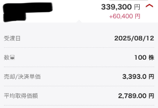 まだ上がるかもなのですが、あまり欲張りすぎてもな〜と思いついに利確してしまいました(もともとギャンブラー性のあるタイプの銘柄でもなかったため)