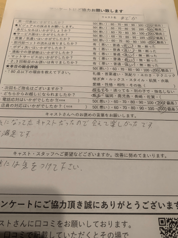 まどか氏のアンケート評価