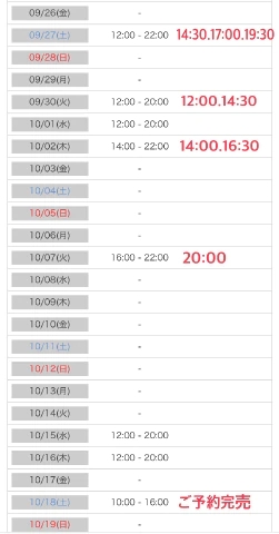 やっと決まりました(。・ω・。)10/3が今のところ母の退院予定日に決まりました✨️しばらくの間母に付き添う必要があり実家に帰省しますので10月前半はほぼお休みです♀️"後半も平日メインでの出勤になります♀️空き枠はこんな感じですご予約お待ちしております姫予約大歓迎❣️❣️LINE @920zyvnyQRコードからもお友達追加出来ます♀️朝起きてLINE来てたら嬉しいな高岡美羽