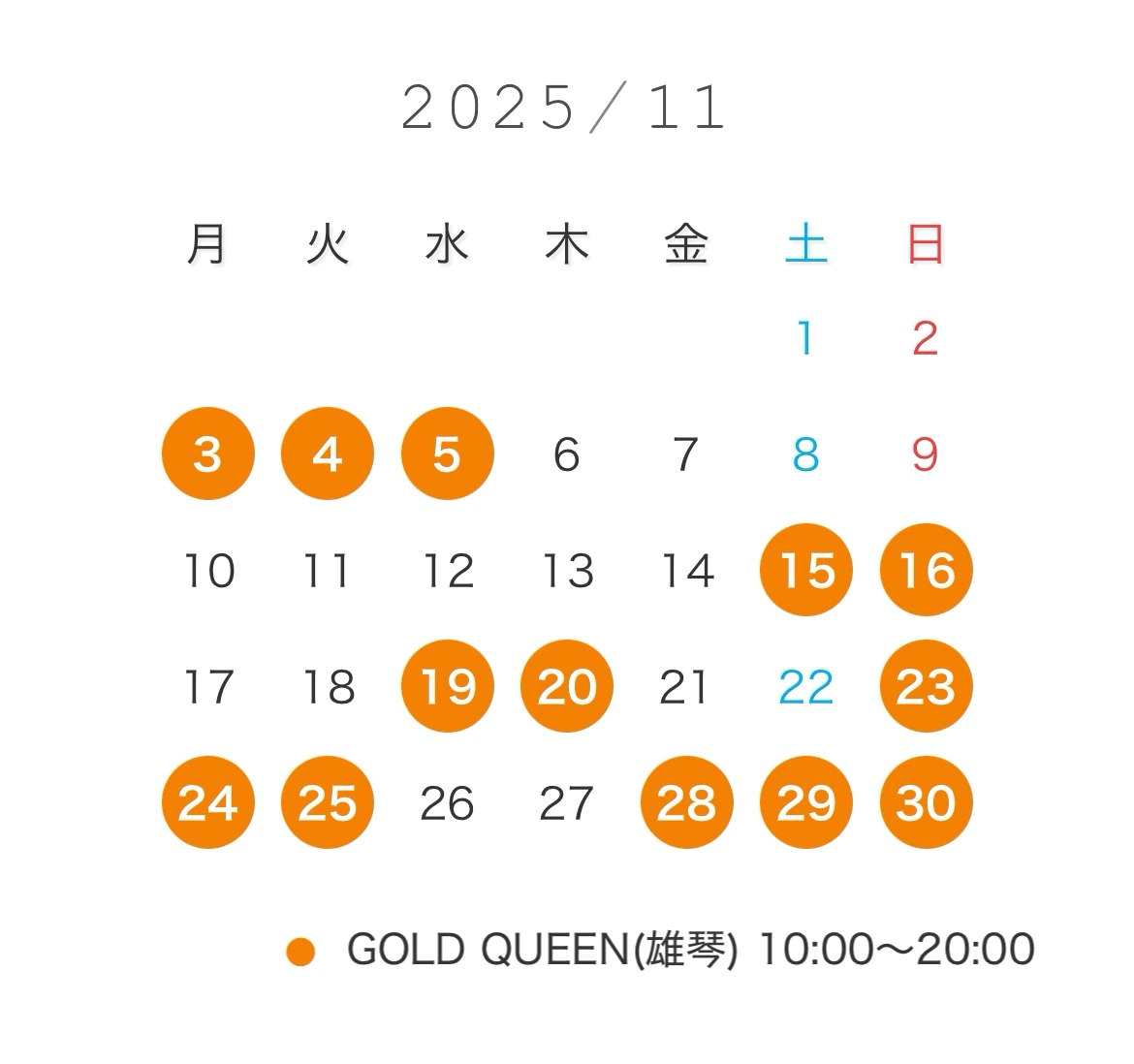 《 11月出勤予定 》