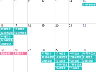 特に、16日、27日、28日がご予約寂しいのでお問い合わせいただけると嬉しいです✨
