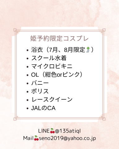 写メは8月末までの姫予約限定コスプレの