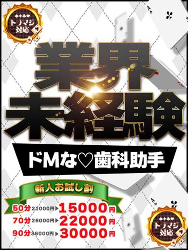 *☆*――*☆*――*☆* 【新人お試し割】 ◆50分15000円(指名料込) ◆70分22000円(指名料込) ◆90分30000円(指名料込) *☆*――*☆*――*☆* トランプマジック対応 *☆*――*☆*――*☆* 期間限定(10/3~10/13) *☆*――*☆*――*☆* ~講習の先生からのコメント~ 真面目で愛嬌もあって人柄笑顔花丸満点(花丸)です! ちょっと照れ屋さんなところが心くすぐられる可愛さでした♡ 分からないことを積極的に聞いてくださる姿勢が本当に素敵でした! *☆*――*☆*――*☆* 超希少!逸材現る! S漢さま!必見! 天性のドM気質! 激敏感!激濡れ! 歯科助手【ゆい】ちゃん♡♡ 業界初体験(^o^)/ ミニマムBODYに! 美巨乳Fカップ!… このカラダにこのお乳! 巨乳てか!爆乳です! 美爆乳が白くて眩しいです✨✨ しかも!清楚で真面目な癒し系♡♡ 見ているだけで癒されます! そばにいるだけで和みます! 「良い子や~~~ぁ♡」 って!なっていただけます! こんなにも素敵な美女が! なっなんとーぉ! 乱れます! 皆さまの舌と指が! GODになります! 見た目とのギャップ最大値! そそられます!興奮度爆増! 刺激的な大人なイチャイチャ♡♡ 満喫しちゃってくださいませ♪。.:*♡ 以上です(__) 【注意】M〇トはご遠慮ください!ルールとマナーを【絶対に守って】お楽しみください!