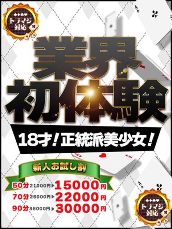 *☆*――*☆*――*☆* 【新人お試し割】 ◆50分15000円(指名料込) ◆70分22000円(指名料込) ◆90分30000円(指名料込) *☆*――*☆*――*☆* 業界未経験 *☆*――*☆*――*☆* トランプマジック対応 *☆*――*☆*――*☆* 期間限定(10/16~10/17) *☆*――*☆*――*☆* 底抜けに明るい✨元気◎◎◎✨ しなやかスレンダー!!! 腰の動きに釘っ付け♡♡♡ ダンサー【なる】ちゃん✨✨✨ 2日間限定!ソープ初体験(^O^)/ 先ずお伝えせねば! カワイイです!正統派美少女です! なんっつーても! カラダがキレイ!細くてキレイ! でも!お胸は大きいーぃ! \\最高// この言葉しか出てきません! このお顔!このカラダ! リアルに会うと衝撃くらっちゃいますよ♡ しかも! 手コ〇専門店で目覚めたS心ーぉ! お兄さま・オジさまが! 気持ち良くなっくれている姿が♡ 大好きなんだとか…! 【なみ】ちゃんにギンギンしてもらった後は♡ トラマジ付けて初心な反応をお楽しみくださいませ♪ 以上です(__) 【注意】M〇トはご遠慮ください!ルールとマナーを【絶対に守って】お楽しみください!