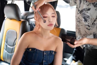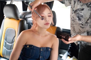車の中でメイクのお直し
