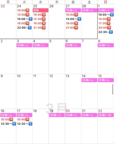 3月のご予約が寂しいので