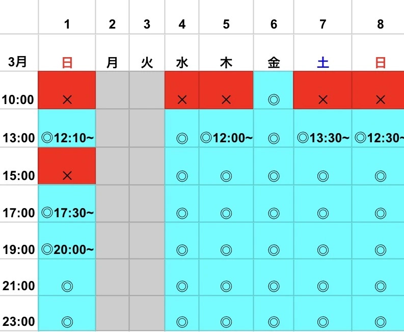 3月出勤予定です