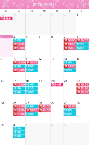 (出勤予定公開後、いつでも御予約がお取りできます。ご新規様もご予約可能です)