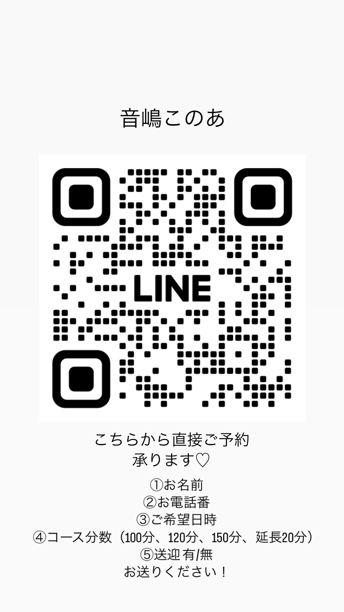 ※ご予約専用LINEですのでその他の内容はお返事が遅かったりできない場合がございますのでご了承ください