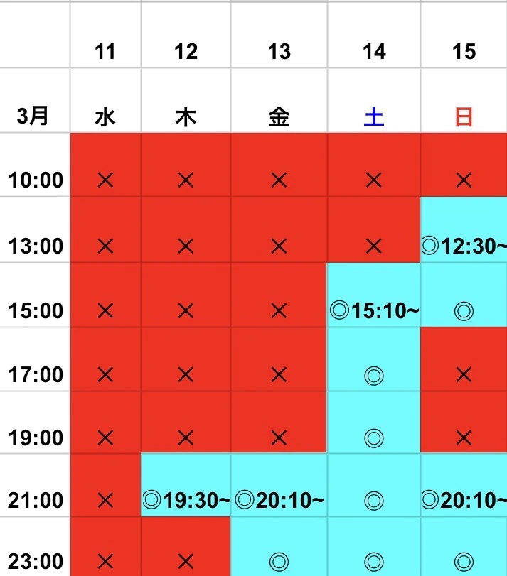 土日もまだまだ空き枠に余裕があるので