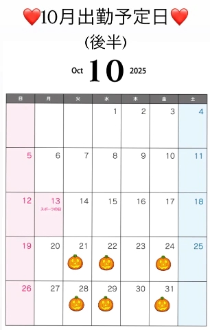 10月後半の出勤予定日です❤️