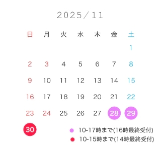 11月の出勤予定と姫予約特典ご案内です
