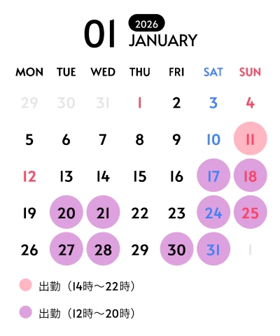 ❖1月の出勤予定❖