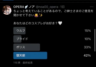 堕天使が1番人気でした✨最後までポリスと接戦でしたが、出し抜きましたね。116票も投票も✨!投票して下さった皆さまご協力ありがとうございました☺️✨ハロウィンイベント期間がますます楽しみだぁ✨