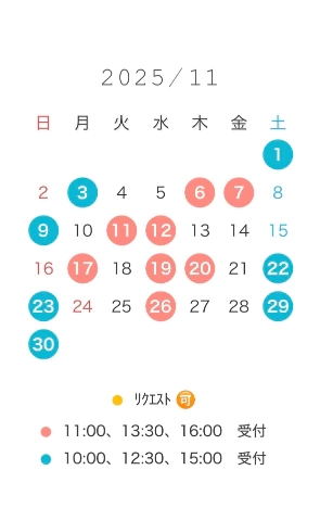 11月の出勤予定(仮) です