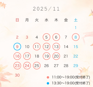 ※ご予約日前日20時までにお電話がない場合キャンセルになりますのでご了承ください。
