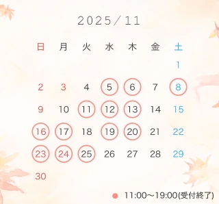 ※ご予約日前日20時までにお電話がない場合キャンセルになりますのでご了承ください。