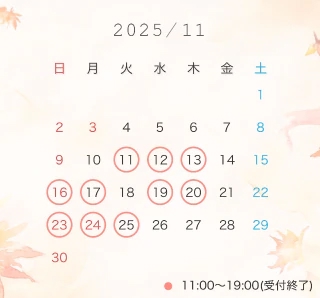 ※ご予約日前日20時までにお電話がない場合キャンセルになりますのでご了承ください。