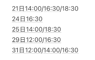 現在の空き状況です※年内のご案内は全枠完売しております2026.1月ラスト枠18:30のご案内はあと2枠♡素敵な出会いを楽しみにあなたからのお誘いお待ちしています❤️お約束はこちらから①お名前②ご希望日時(複数書いて頂けますとご案内がスムーズです)③お電話番号④送迎の有無(日暮里/三ノ輪/南千住)全てご記入の上、以下LINE又はメールよりお問い合わせください