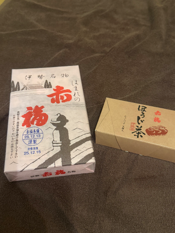 しかも前話してた赤福ーーー?私これ大好きなの、すぐ食べたwwwお茶も!初めて!飲むの楽しみーー?