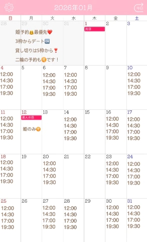 貸切は6枠(お会いしたことある方限定)