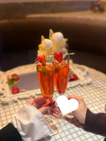 お酒ではなくイチゴソーダ、可愛いでしょ♡