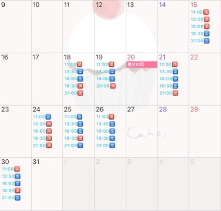 11時、13時半、16時、18時半、21時