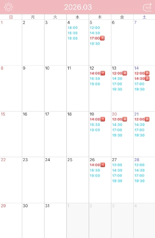 3月出勤予定