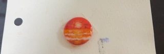 透明のレジンの上に、アクリル絵の具で絵を描きました。
